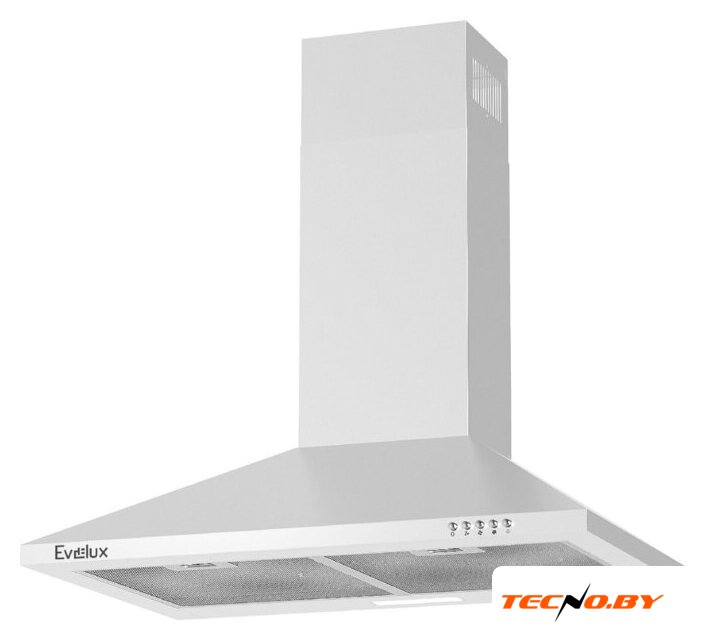 конструкция плоская, монтаж настенный, ширина 59.5 см, управление механическое/кнопочное, производительность мотора 400 м³/ч, цвет белый