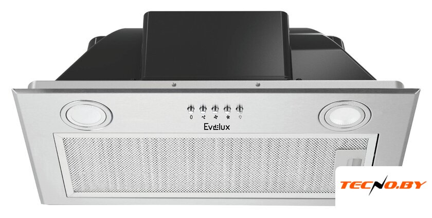 конструкция телескопическая, монтаж для встраивания, ширина 59.5 см, управление механическое/кнопочное, производительность мотора 750 м³/ч, цвет нержавеющая сталь
