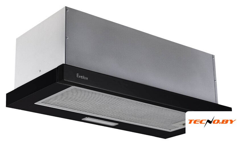 конструкция скрытая, монтаж для встраивания, ширина 59.8 см, управление механическое/кнопочное, производительность мотора 600 м³/ч, цвет нержавеющая сталь