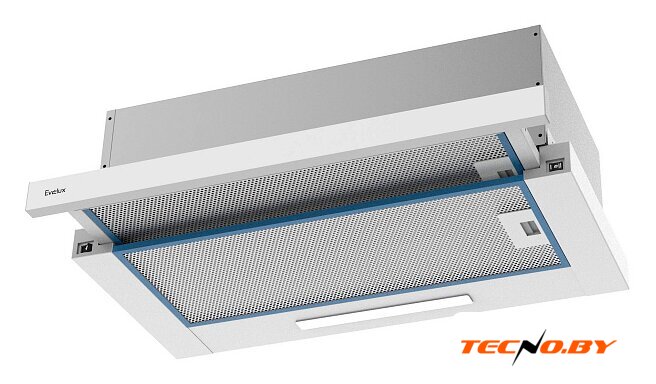 Кухонная вытяжка Evelux Tel 60 W оснащена кнопочным механическим управлением, пользователи могут выбрать одну из двух скоростей работы вытяжки. Мотор мощностью 90 Вт обеспечивает максимальную производительность в 670 куб. м/ч, что гарантирует эффективное устранение неприятных запахов и пара. Отсутствие лишних функций делает ее простой и удобной в использовании.
