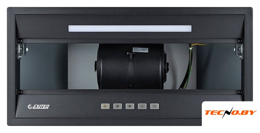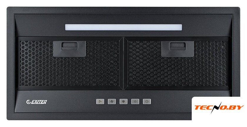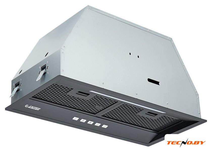 конструкция скрытая, монтаж для встраивания, ширина 59.8 см, управление кнопочное, производительность мотора 850 м³/ч, цвет черный