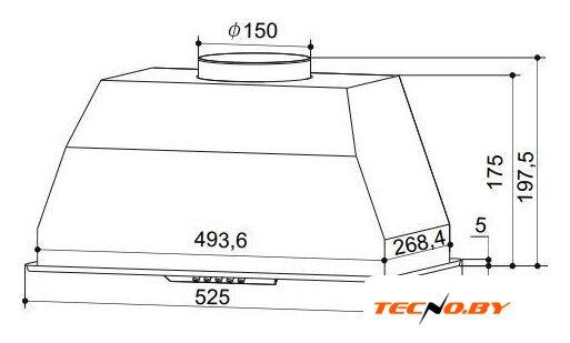 конструкция купольная, монтаж настенный, управление механическое/слайдерное, производительность мотора 400 м³/ч, ширина 49.9 см