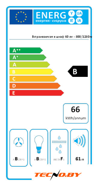 Эта модель обеспечивает максимальную производительность отвода до 470 куб. м/ч, а в интенсивном режиме достигает 670 куб. м/ч. Вытяжка оснащена встроенным мотором мощностью 215 Вт и имеет минимальную производительность отвода 270 куб. м/ч. Энергоэффективность класса B и годовой расход электроэнергии всего 66 кВт·ч/год делают её экономичным приобретением для вашего дома.