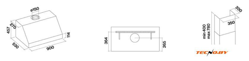 С широкими габаритами 90 см и глубиной 53 см, эта вытяжка легко впишется в среднестатистические кухонные пространства. При весе в 25 кг и высоте 45.7 см, она удобна в установке и обслуживании, а диаметр воздуховода 150 мм обеспечивает надежное соединение с вентиляционной системой вашей кухни.