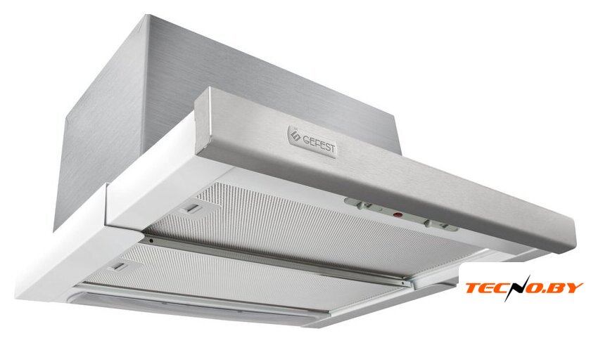 конструкция наклонная, монтаж настенный, ширина 59.5 см, управление механическое/кнопочное, производительность мотора 650 м³/ч, цвет белый