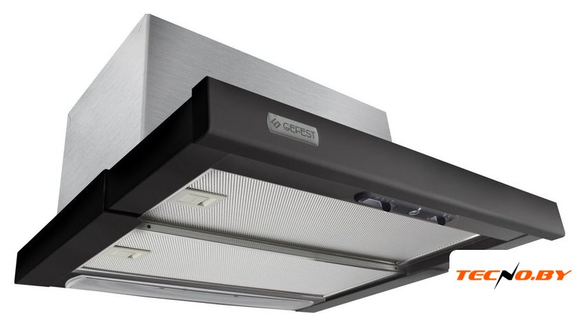 конструкция скрытая, монтаж для встраивания, ширина 59.8 см, управление механическое/кнопочное, производительность мотора 850 м³/ч, цвет черный