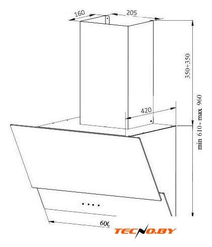конструкция наклонная, монтаж настенный, ширина 59.5 см, управление электронное/кнопочное, производительность мотора 600 м³/ч, цвет бежевый