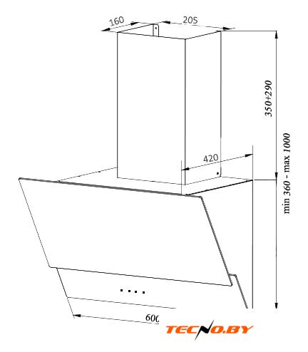 конструкция наклонная, монтаж настенный, ширина 60 см, управление механическое/кнопочное, производительность мотора 520 м³/ч, цвет черный