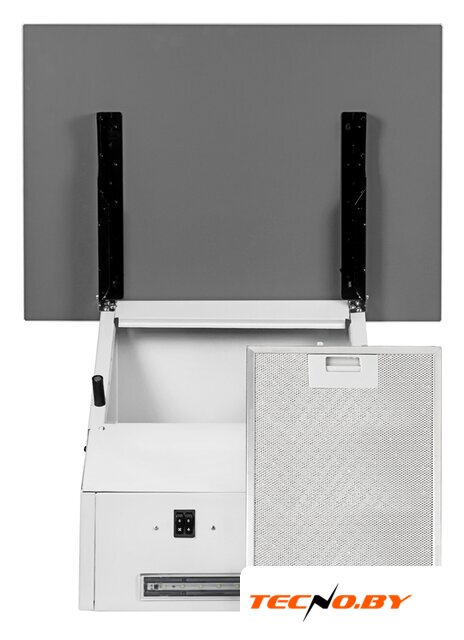конструкция телескопическая, монтаж для встраивания, ширина 60 см, управление механическое/кнопочное, производительность мотора 550 м³/ч, цвет белый