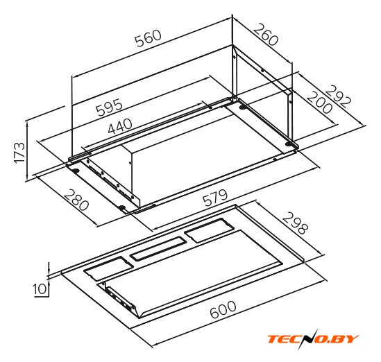 конструкция скрытая, монтаж для встраивания, ширина 60 см, управление механическое/кнопочное, производительность мотора 800 м³/ч, цвет черный
