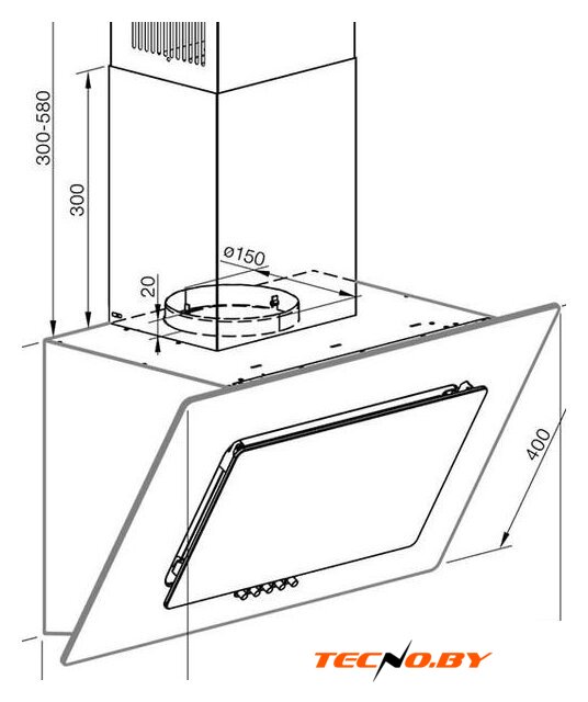 Компактные размеры модели, с шириной 50 см, глубиной 31,2 см и регулируемой высотой от 64,3 до 92,3 см, делают её подходящей практически для любой кухни. Диаметр воздуховода составляет 150 мм, что обеспечивает оптимальное подключение к системе вентиляции.