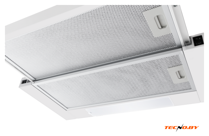 конструкция скрытая, монтаж для встраивания, управление механическое/слайдерное, производительность мотора 600 м³/ч, ширина 59.8 см