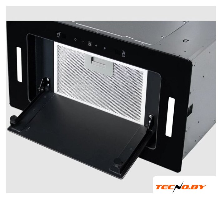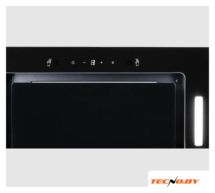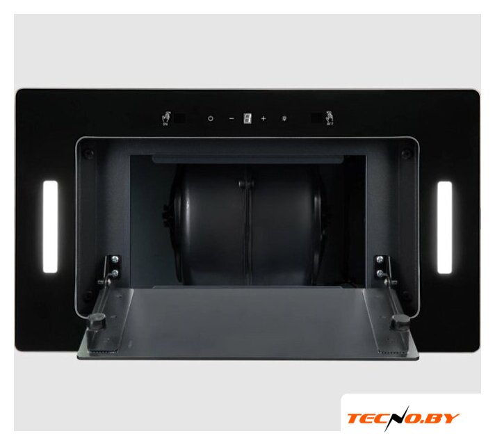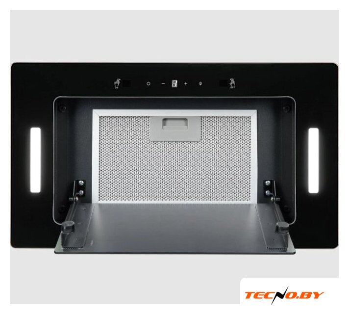 конструкция наклонная, монтаж настенный, ширина 59.7 см, управление сенсорное/жестами, производительность мотора 750 м³/ч, цвет черный