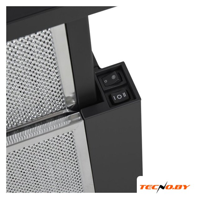 Для удобства использования вытяжка оснащена простым механическим кнопочным управлением с двумя скоростями. Это позволяет быстро подстроиться под нужные условия приготовления. Отсутствие сложных электронных элементов делает использование понятным и интуитивно простым, что будет особенно оценено теми, кто предпочитает рукодельный подход в управлении.