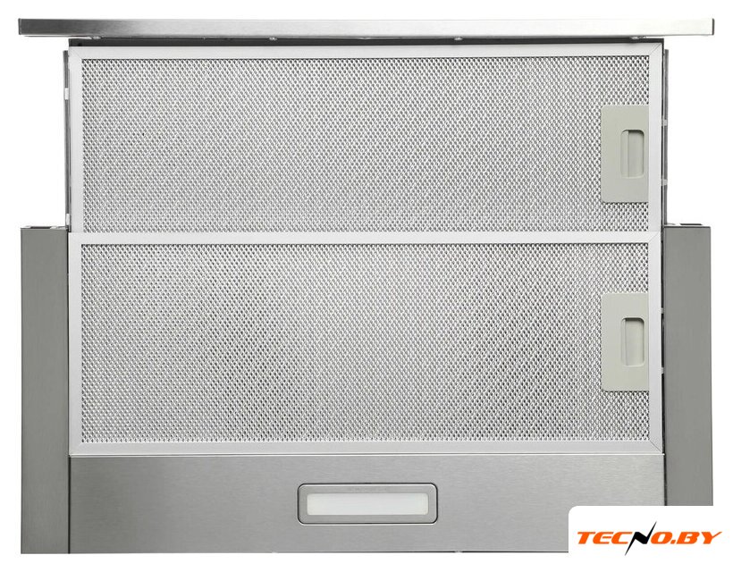 конструкция телескопическая, монтаж для встраивания, ширина 49.5 см, управление механическое/кнопочное, производительность мотора 600 м³/ч, цвет нержавеющая сталь