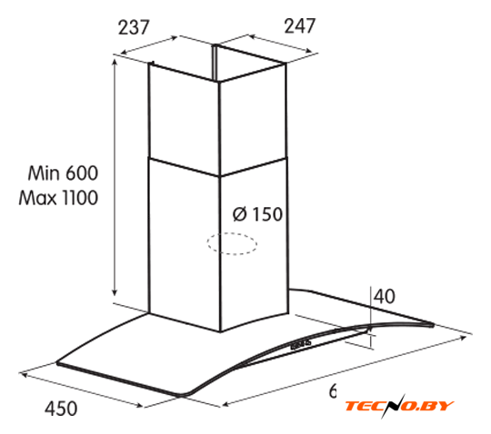 С компактными размерами (ширина 60 см, глубина 45 см, высота от 64 см до 114 см) и диаметром воздуховода 150 мм, эта вытяжка легко монтируется и вписывается даже в небольшие пространства, обеспечивая достаточную циркуляцию воздуха и свежесть на вашей кухне.