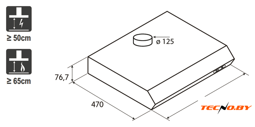 Вытяжка Jetair Light WH/F/60 создана с учётом компактности, её ширина составляет 60 см, глубина — 47 см, а высота — всего 7,67 см. Такая компоновка позволяет установить её даже на небольшой кухне, экономя драгоценное пространство. Диаметр воздуховода составляет 125 мм, обеспечивая достаточную циркуляцию воздуха.