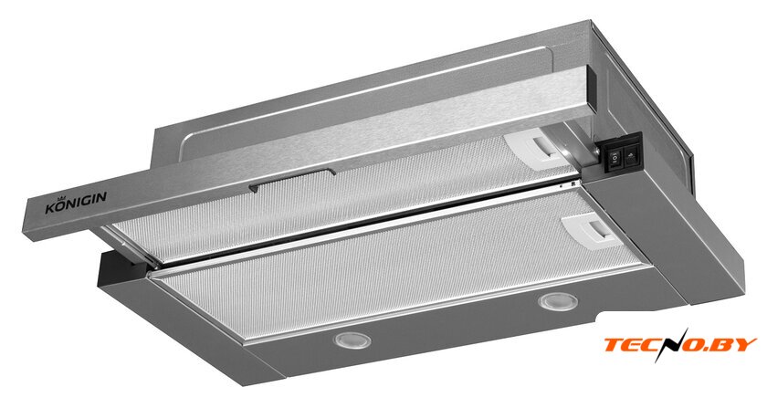 конструкция скрытая, монтаж для встраивания, ширина 45 см, управление механическое/кнопочное, производительность мотора 650 м³/ч, цвет нержавеющая сталь