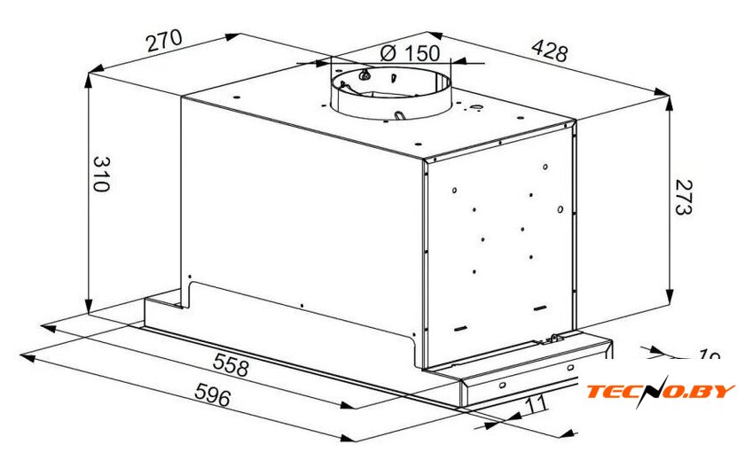 С габаритами 59,6 см в ширину, 29 см в глубину и высотой 31 см, вытяжка Konigin Extra 60 подходит практически для любой кухни. Ее вес составляет 8,6 кг, а возможность выбора диаметра воздуховода (120 мм или 150 мм) делает установку простой и гибкой.