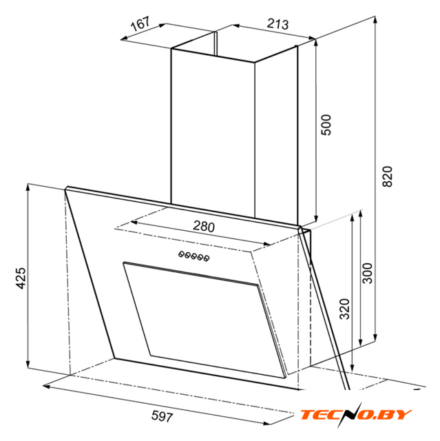 конструкция наклонная, монтаж настенный, ширина 90 см, управление механическое/кнопочное, производительность вытяжки 850 м³/ч, цвет нержавеющая сталь/черный