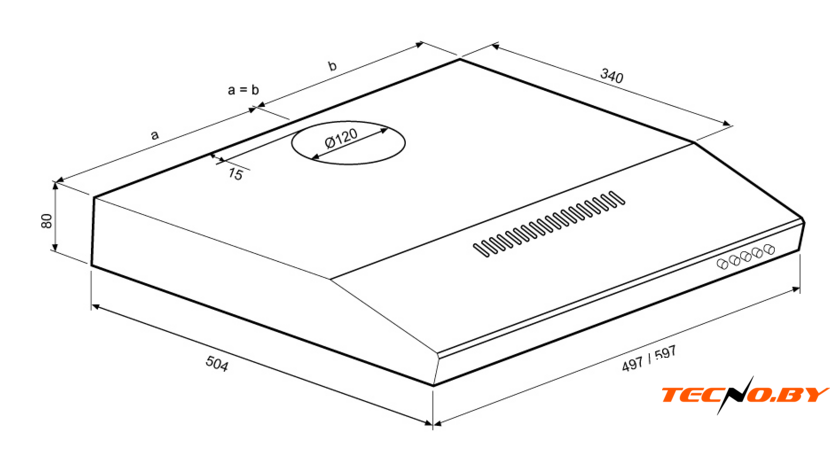 Ширина устройства составляет 60 см, что позволяет экономить место на кухне, без потери функциональности. Её компактные размеры — глубина 50 см, высота 8 см и вес 5 кг — обеспечивают простоту установки и интеграции в любое кухонное пространство. Диаметр воздуховода в 120 мм способствует эффективному отводу загрязненного воздуха.