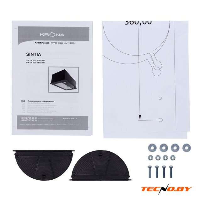 конструкция скрытая, монтаж для встраивания, ширина 52 см, управление механическое/кнопочное, производительность мотора 900 м³/ч, цвет белый