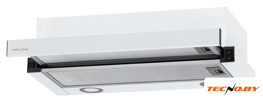 конструкция телескопическая, монтаж для встраивания, ширина 50 см, управление механическое/кнопочное, производительность мотора 600 м³/ч, цвет белый
