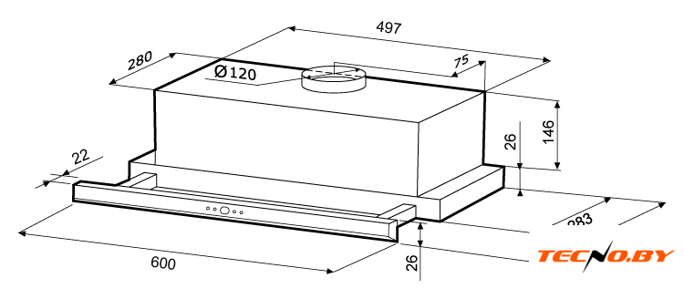 конструкция скрытая, монтаж для встраивания, ширина 59.8 см, управление механическое/кнопочное, производительность мотора 850 м³/ч, цвет нержавеющая сталь