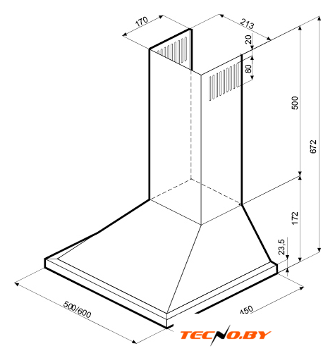 Вытяжка Krona Bella 600 Inox имеет удобные для большинства кухонь размеры: ширина 60 см, глубина 45 см и высота 67.2 см. При весе всего 6 кг её легко установить и при необходимости переместить. Это идеальное решение для рационального использования пространства без компромиссов в отношении дизайна и эффективности.