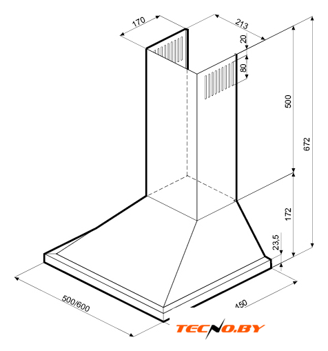 конструкция скрытая, монтаж для встраивания, управление механическое/слайдерное, производительность мотора 600 м³/ч, ширина 59.8 см