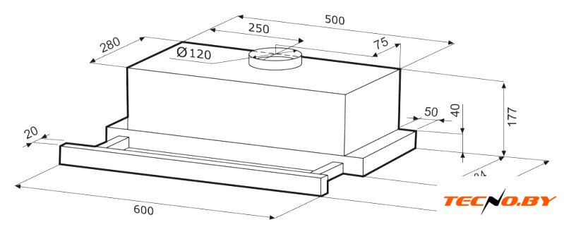конструкция плоская, монтаж настенный/для встраивания, управление слайдерное, производительность мотора 290 м³/ч, ширина 50 см