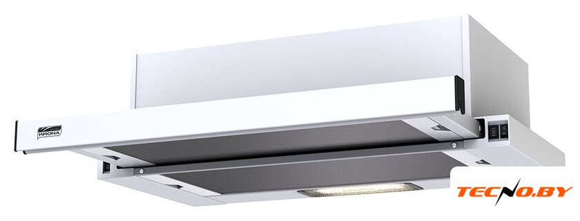 конструкция телескопическая, монтаж для встраивания, ширина 60 см, управление механическое/кнопочное, производительность мотора 500 м³/ч, цвет белый