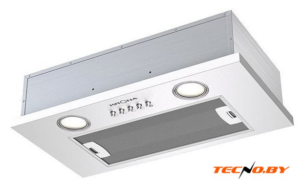 конструкция купольная, монтаж настенный, ширина 60 см, управление электронное/кнопочное, производительность мотора 900 м³/ч, цвет белый