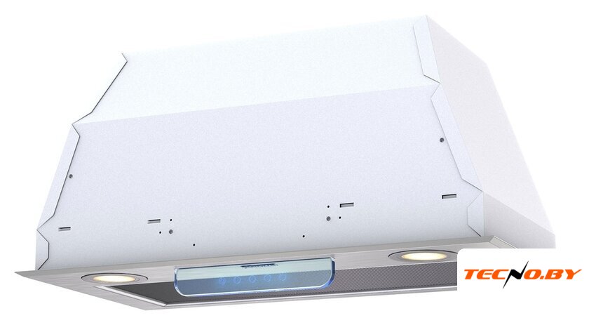 конструкция наклонная, монтаж настенный, ширина 50 см, управление сенсорное, производительность мотора 900 м³/ч, цвет белый