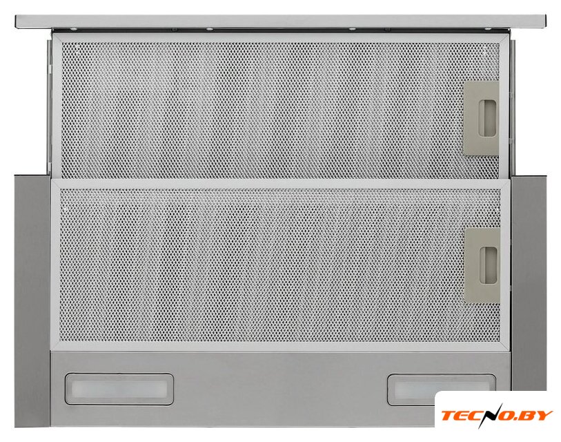 конструкция телескопическая, монтаж для встраивания, ширина 59.8 см, управление механическое/кнопочное, производительность мотора 850 м³/ч, цвет белый