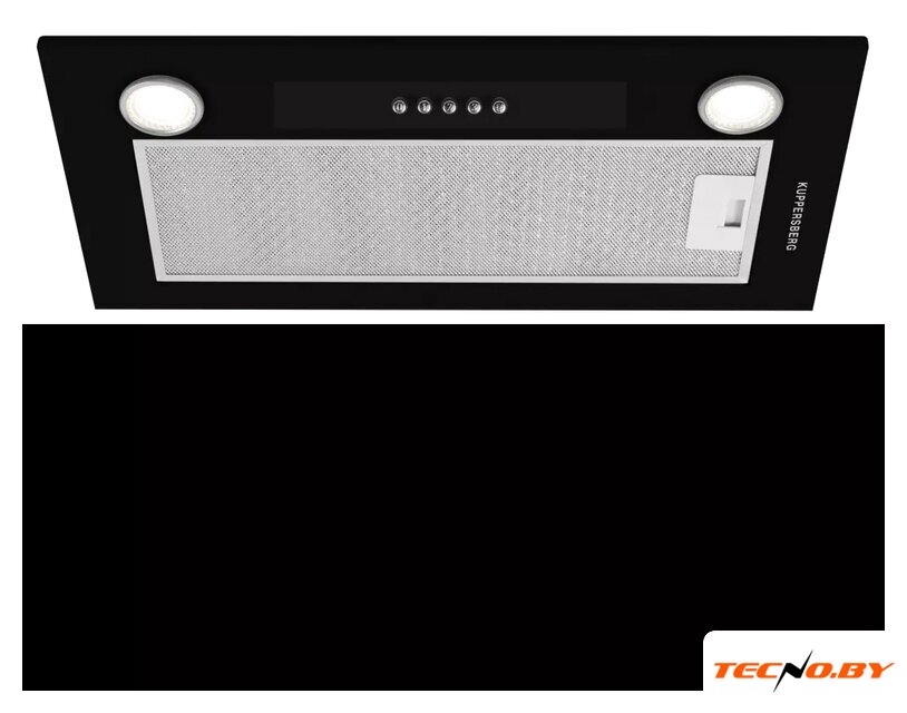 конструкция скрытая, монтаж для встраивания, ширина 52 см, управление сенсорное, производительность вытяжки 1000 м³/ч, производительность мотора 1000 м³/ч, цвет черный