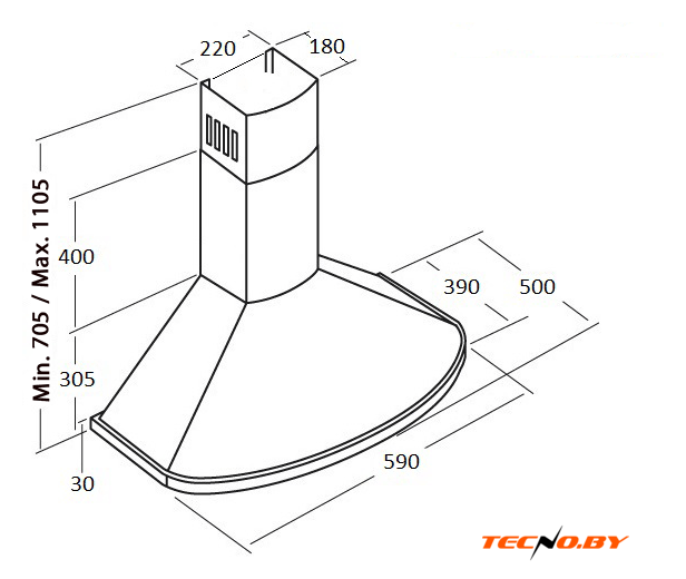 Электронное кнопочное управление вытяжкой делает её использование простым и комфортным. Интуитивно понятная панель управления позволяет без труда переключать скорости, а функция таймера автоотключения обеспечивает дополнительное удобство и экономию электроэнергии, завершая работу устройства через определенное время.