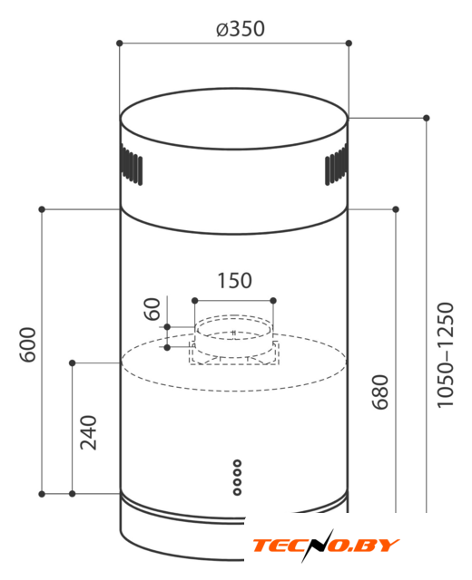 С размерами 35 см в ширину и глубину, вытяжка LEX Tubo Isola 350 компактна и подходит для установки на небольших кухнях. Ее островной монтаж делает ее идеальным выбором для тех, кто ценит свободу и открытость в пространстве. Вес в 22 кг делает ее устойчивой и надежной в эксплуатации, а диаметр воздуховода в 150 мм гарантирует отличную вентиляцию.