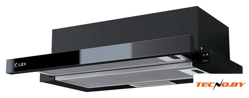 конструкция скрытая, монтаж для встраивания, ширина 53 см, управление механическое/кнопочное, производительность мотора 870 м³/ч, цвет черный