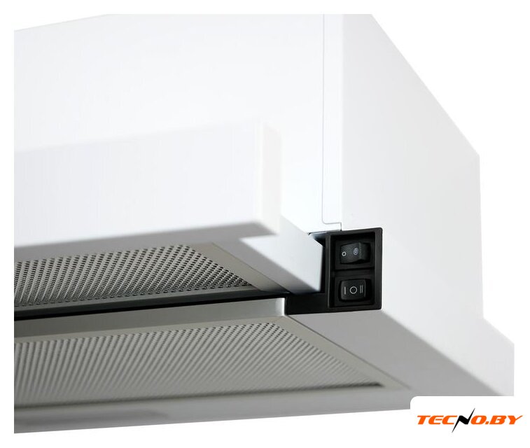 конструкция скрытая, монтаж для встраивания, ширина 60 см, управление механическое/кнопочное, производительность мотора 850 м³/ч, цвет белый