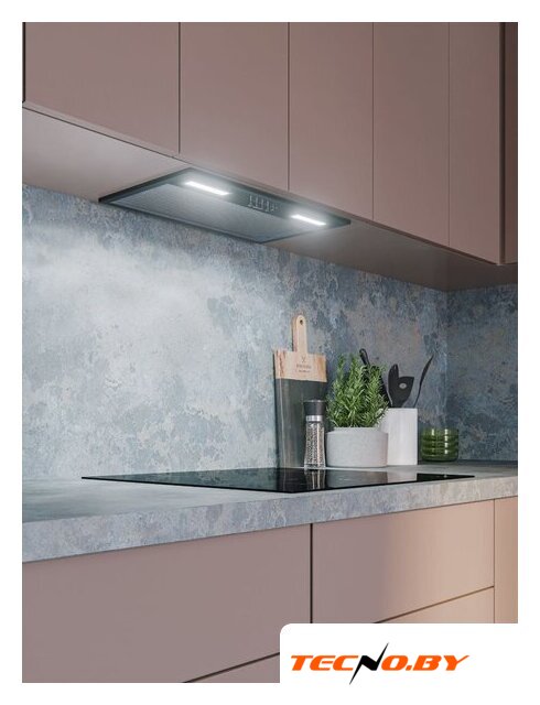 конструкция купольная, монтаж настенный, ширина 50 см, управление механическое/кнопочное, производительность вытяжки 600 м³/ч, цвет коричневый