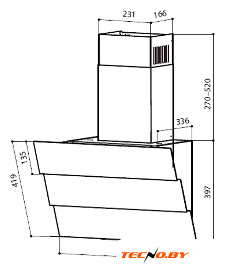 конструкция наклонная, монтаж настенный, управление механическое/кнопочное, производительность вытяжки 427 м³/ч, производительность мотора 450 м³/ч, ширина 60 см