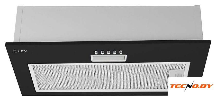 конструкция телескопическая, монтаж для встраивания, ширина 50 см, управление механическое/кнопочное, производительность мотора 600 м³/ч, цвет черный