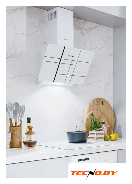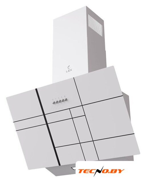 конструкция скрытая, монтаж для встраивания, ширина 52 см, управление механическое/кнопочное, производительность вытяжки 350 м³/ч, производительность мотора 850 м³/ч, цвет белый