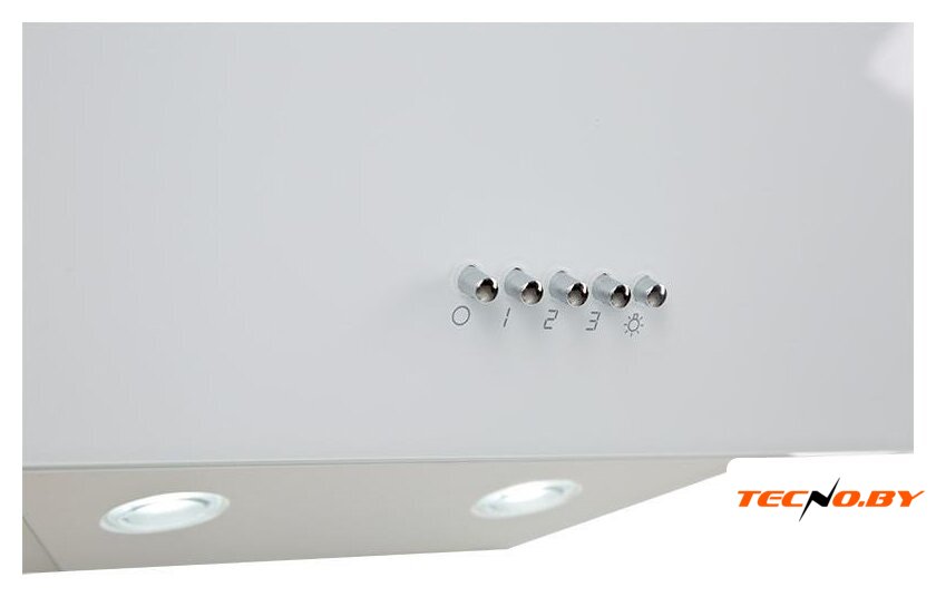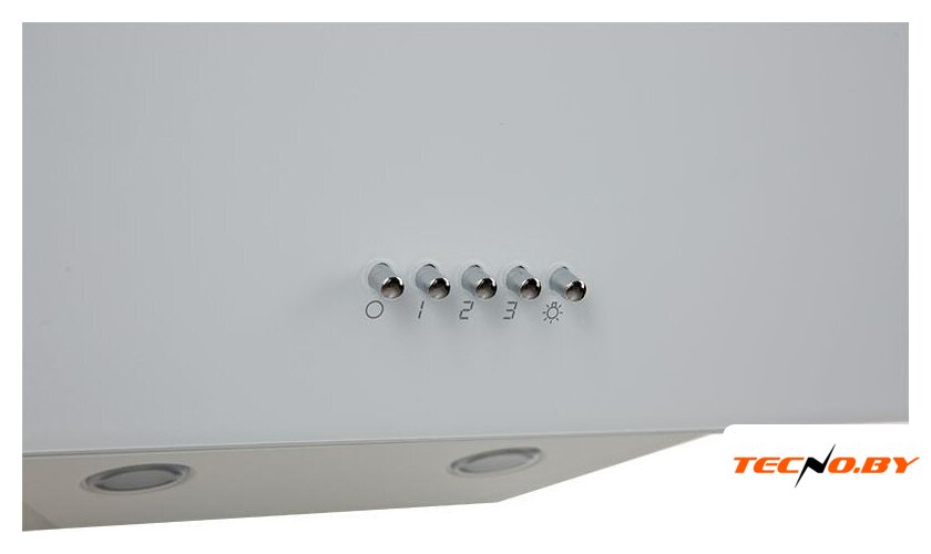конструкция плоская, монтаж для встраивания, ширина 52 см, управление механическое/кнопочное, производительность мотора 650 м³/ч, цвет белый