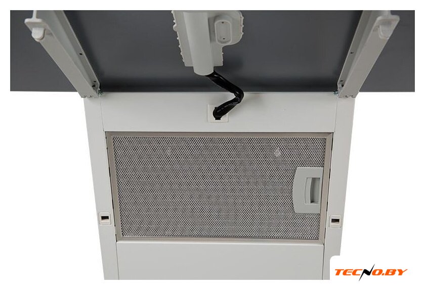 конструкция скрытая, монтаж для встраивания, ширина 53 см, управление механическое/кнопочное, производительность мотора 1080 м³/ч, цвет белый