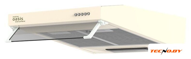 конструкция телескопическая, монтаж для встраивания, ширина 60 см, управление механическое/кнопочное, производительность мотора 400 м³/ч, цвет бежевый