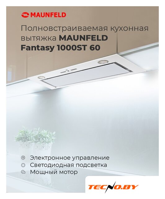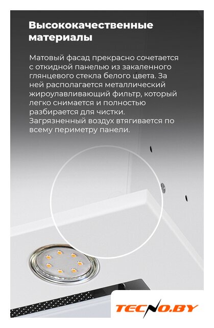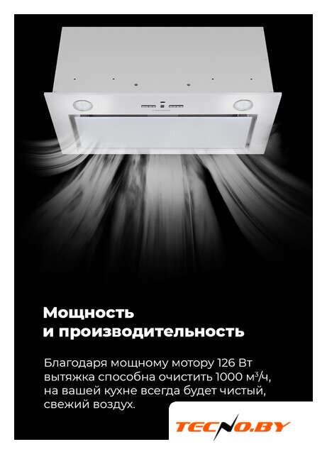 конструкция коробчатая, монтаж островной, ширина 35.15 см, управление электронное/кнопочное, производительность мотора 1050 м³/ч, цвет белый