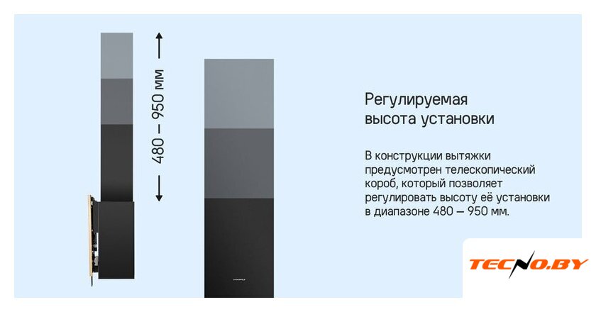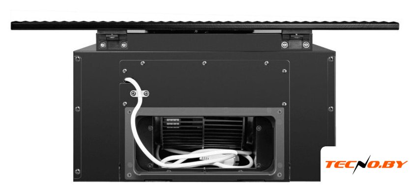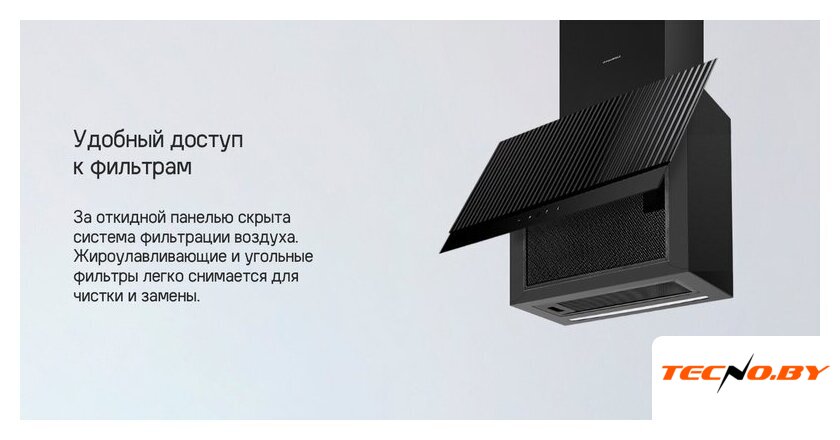 конструкция коробчатая, монтаж настенный, ширина 38 см, управление сенсорное, производительность мотора 1000 м³/ч, цвет черный