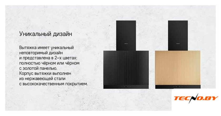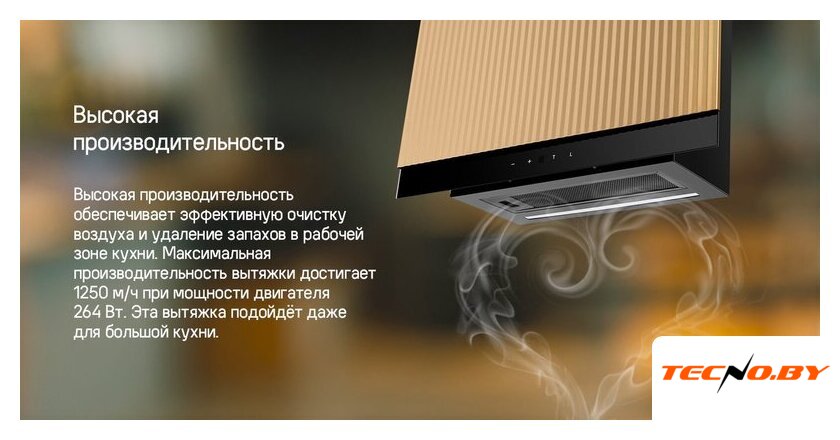 конструкция коробчатая, монтаж настенный, ширина 40.2 см, управление электронное/кнопочное, производительность мотора 1150 м³/ч, цвет золотой